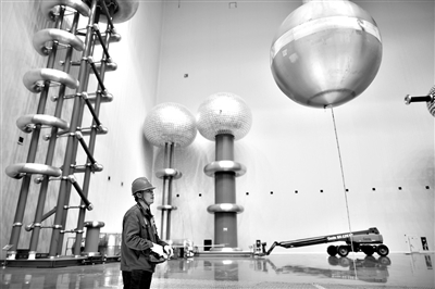 5月9日,国家电网青海省电力公司电力科学研究院工作人员宋琳在高压实验大厅内调试设备。 当日,国家电网青海省电力公司电力科学研究院在位于青海省西宁市的高海拔高电压实验室高压实验大厅内开展高海拔高干环境下±800千伏特高压阀厅空气净距试验研究。该项研究对青海-河南±800千伏特高压直流工程的顺利实施提供技术支撑,同时对我国高海拔地区超高压、特高压输变电设备相关课题研究具有重要意义。 新华社记者 张宏祥 摄