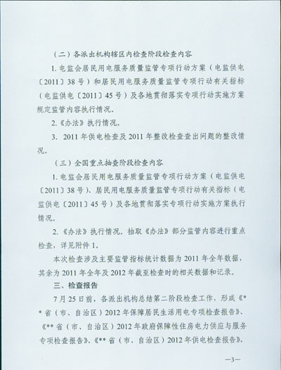 针对近几年供电检查情况,在全国重点抽查阶段,选取《办法》中相关条款作为重点检查内容,具体如下: